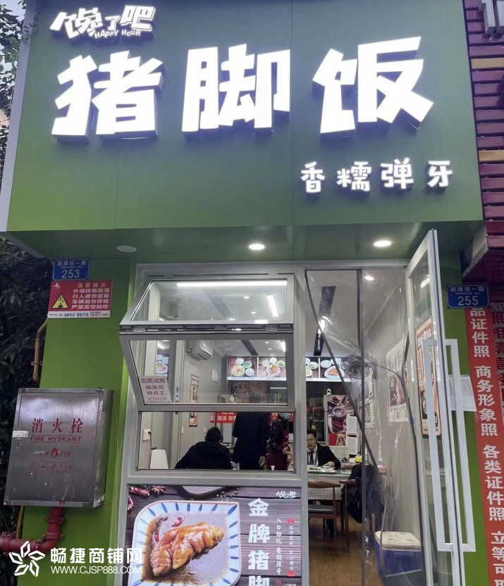 店铺情况:本店目前经营的猪脚饭,口碑味道都很好,老客户多,也做了美团线上,生意一直不得憋,营业额每天2000+,早中晚流动人口大,消费能力也强,对面茶楼也很多,店里有天然气,老板也可以带技术转让,味道有特色。