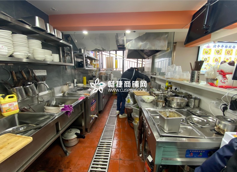 2、店铺情况:店铺目前经营的面馆,水电气三通,天然气6方,面积接近50平方。户型方正,开间大,招牌展示性强,有独立的卫生间和休闲室,无递增,接手就直接经营。