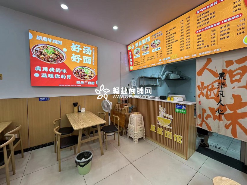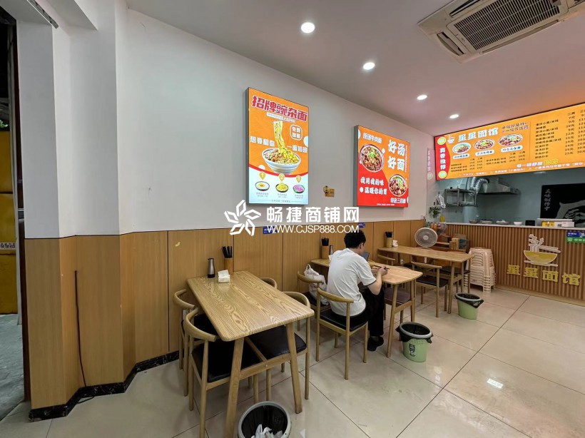 店铺优势:目前经营的面馆,面积60平,租金6500元,户型方正,转角门面,招牌展示性强,水电气三通,全天可以外摆,设施设备齐全,接手即可经营,无需过多添加。